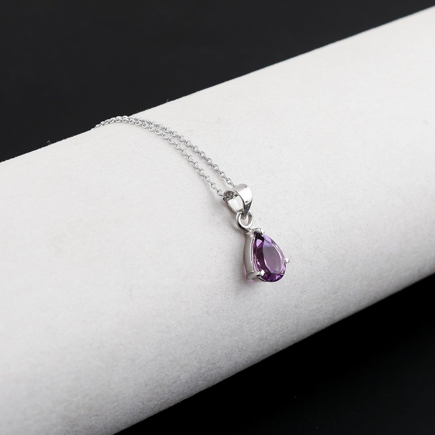 [All My Jewelry has Stories]🟢 Jewelry holds stories for the wearer and no two stories are ever alike. Each piece contains a little bit of history and makes you, you.[About Crystals] 🟢 Crystal Name : Amethyst from Brazil 🟢 Pendant Size : 13x9mm approx. 🟢 Shape and Cut : Brilliant Cut Pear 🟢 Treatment : Natural 🟢 Quality : Premium Quality with AA+ Grade 🟢 Crystal Color : Slightly Similar as depict in the pictures.[About Metal]🟢 Jewelry Length : Chain 16 inch + 2 inch extender🟢 Metal : Rhodium Over 925 Sterling Silver[Why Cabochon/Cut]🟢 Because this is highly valued for its lustrous surface and its ability to display a gemstone's truest colour.[Features]